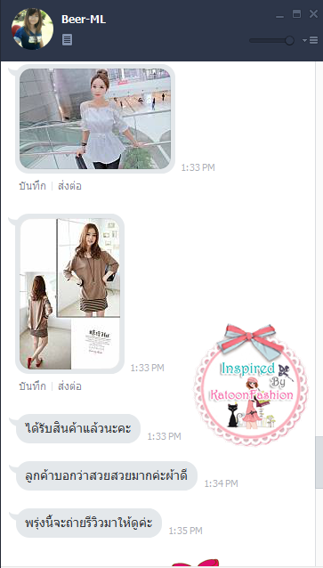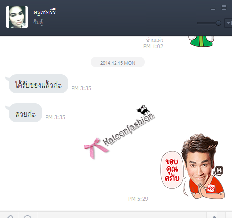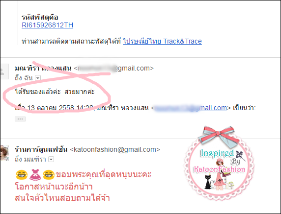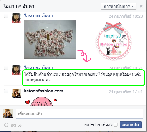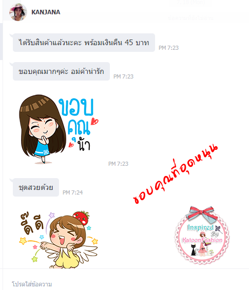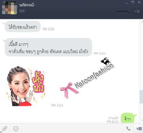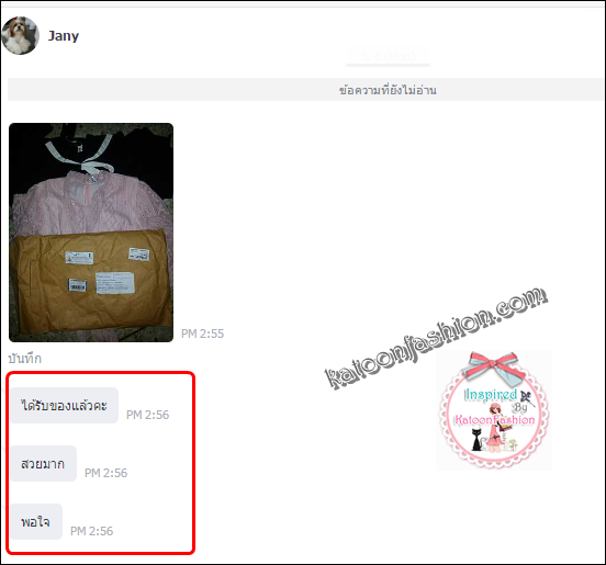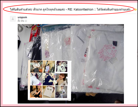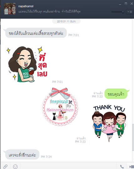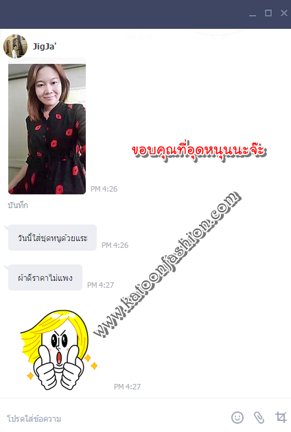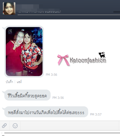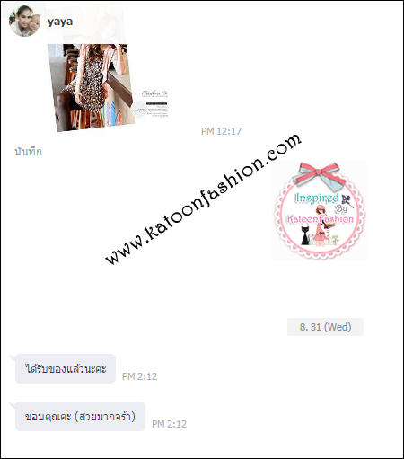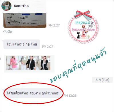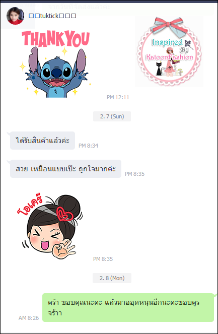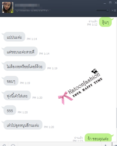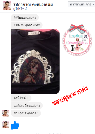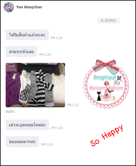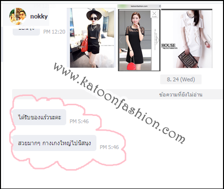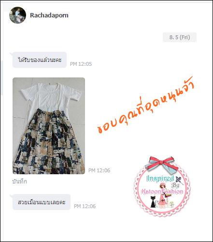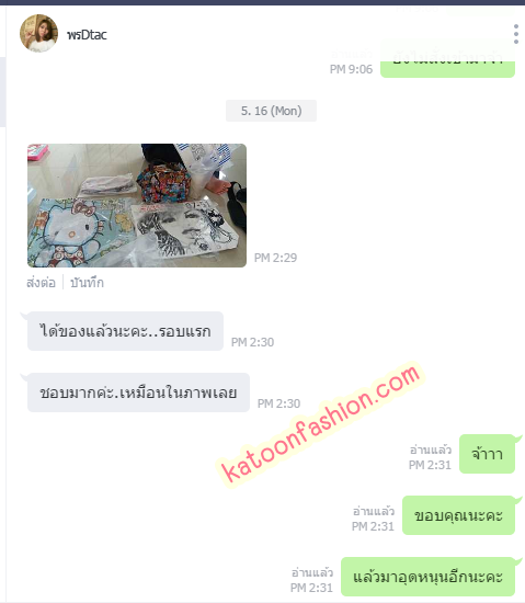 ร้านขอขอบพระคุณลูกค้าที่อุดหนุนสินค้าที่ร้าน katoonfashion ด้วยดีเสมอมานะคะ ร้านขออนุญาตนำภาพถ่าย หรือข้อความ ของคุณลูกค้าผู้มีอุปการะคุณ ที่ได้ติชมเข้ามา แบ่งปัน