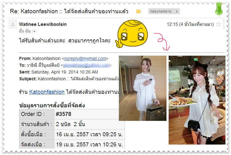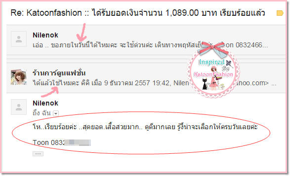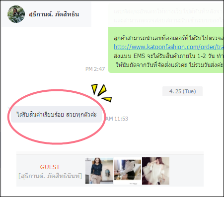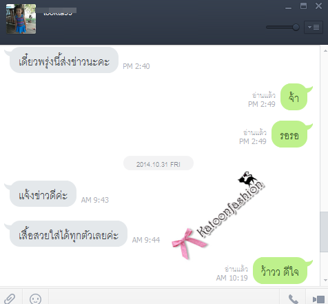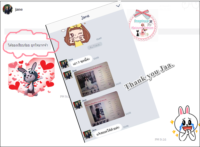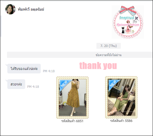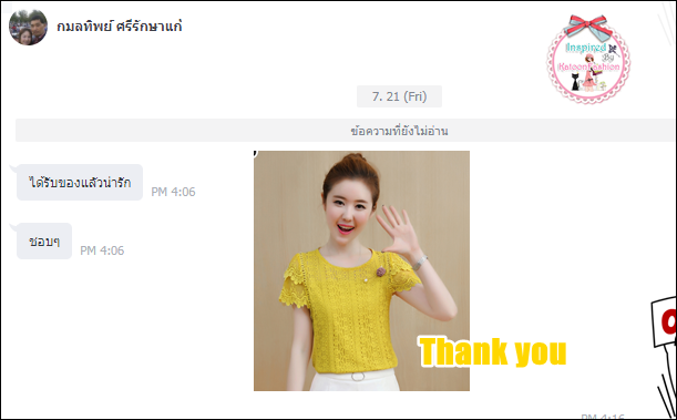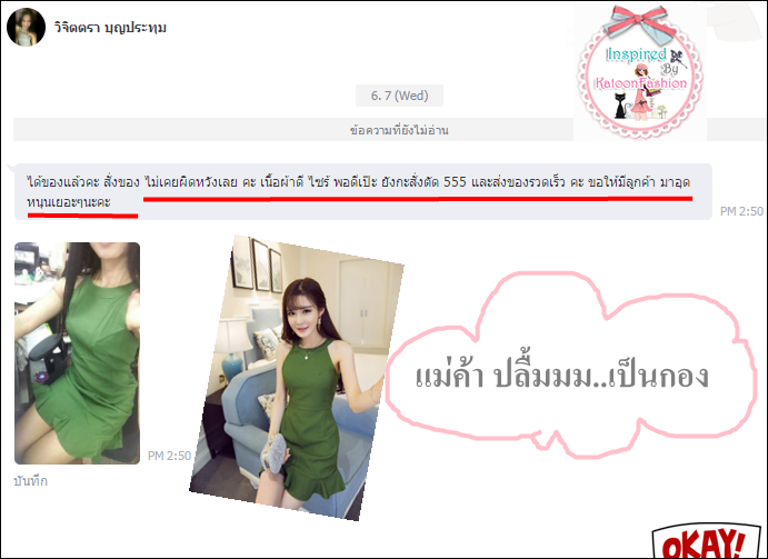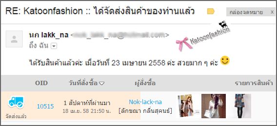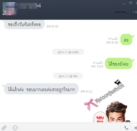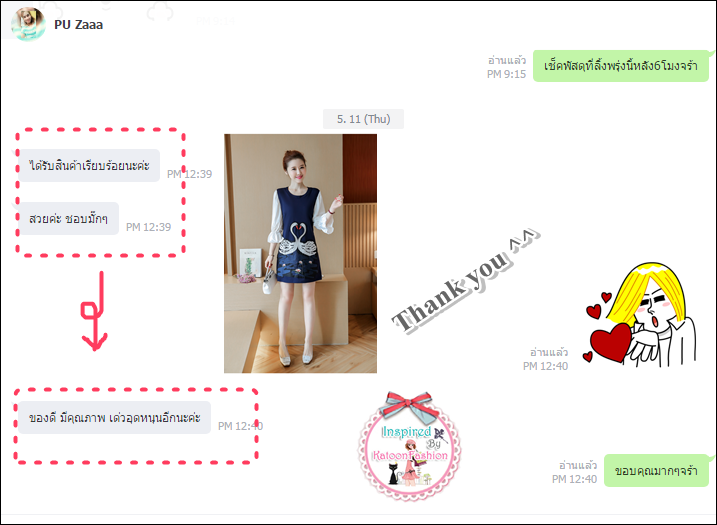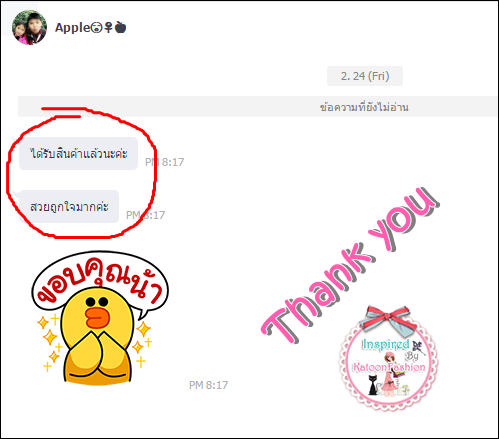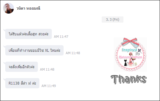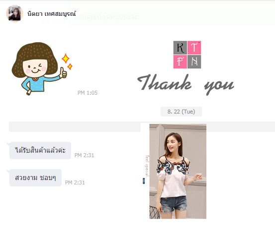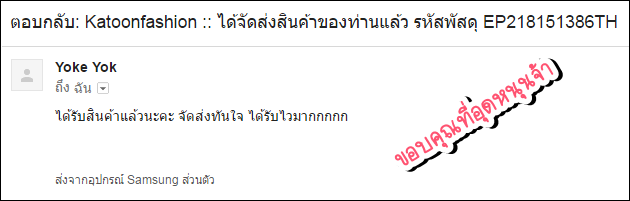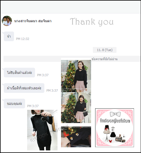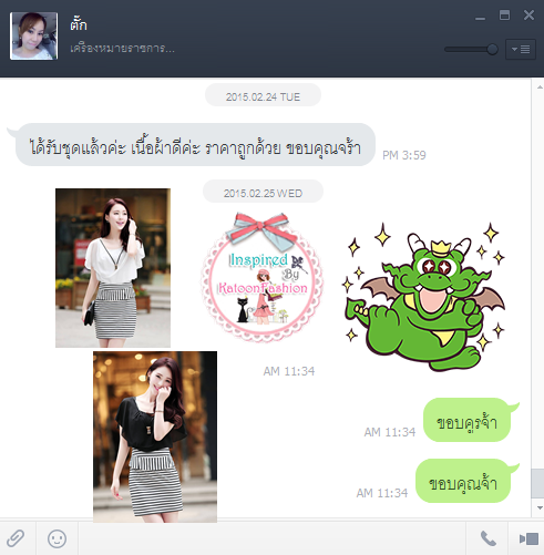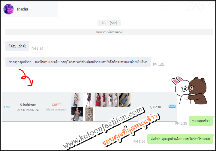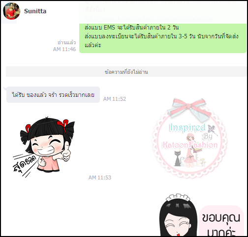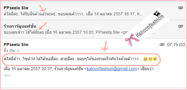 ร้านขอขอบพระคุณลูกค้าที่อุดหนุนสินค้าที่ร้าน katoonfashion ด้วยดีเสมอมานะคะ ร้านขออนุญาตนำภาพถ่าย หรือข้อความ ของคุณลูกค้าผู้มีอุปการะคุณ ที่ได้ติชมเข้ามา แบ่งปัน