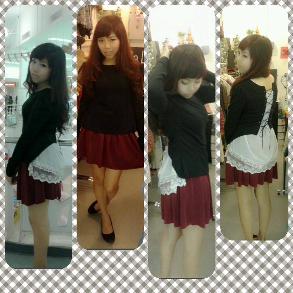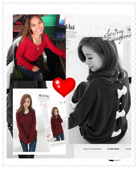 น่ารักมั่กๆ กับเสื้อ2ชิ้น ด้านในลายหัวใจ ตัวนอกสีแดงเลือดหมู ด้านหลังแต่งโบว์ จากสินค้ารหัส 1484