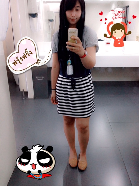 รีวิวเดรสลายริ้วสีเทานำเงิน เหมาะกับลุคสาวออฟฟิส น่ารักๆจ้าา